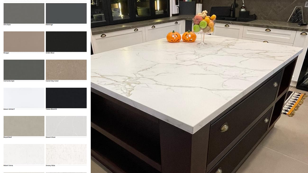 Kuvars Tezgah Taşlarında Renk ve Desen Seçenekleri.